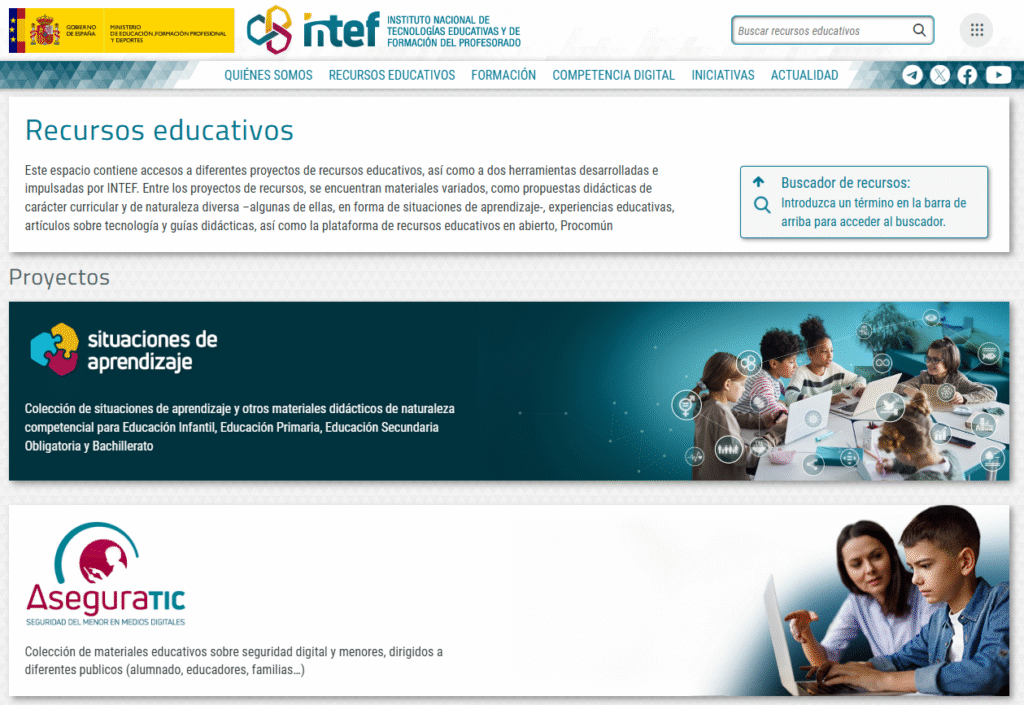 Recursos formativos y educativos INTEF