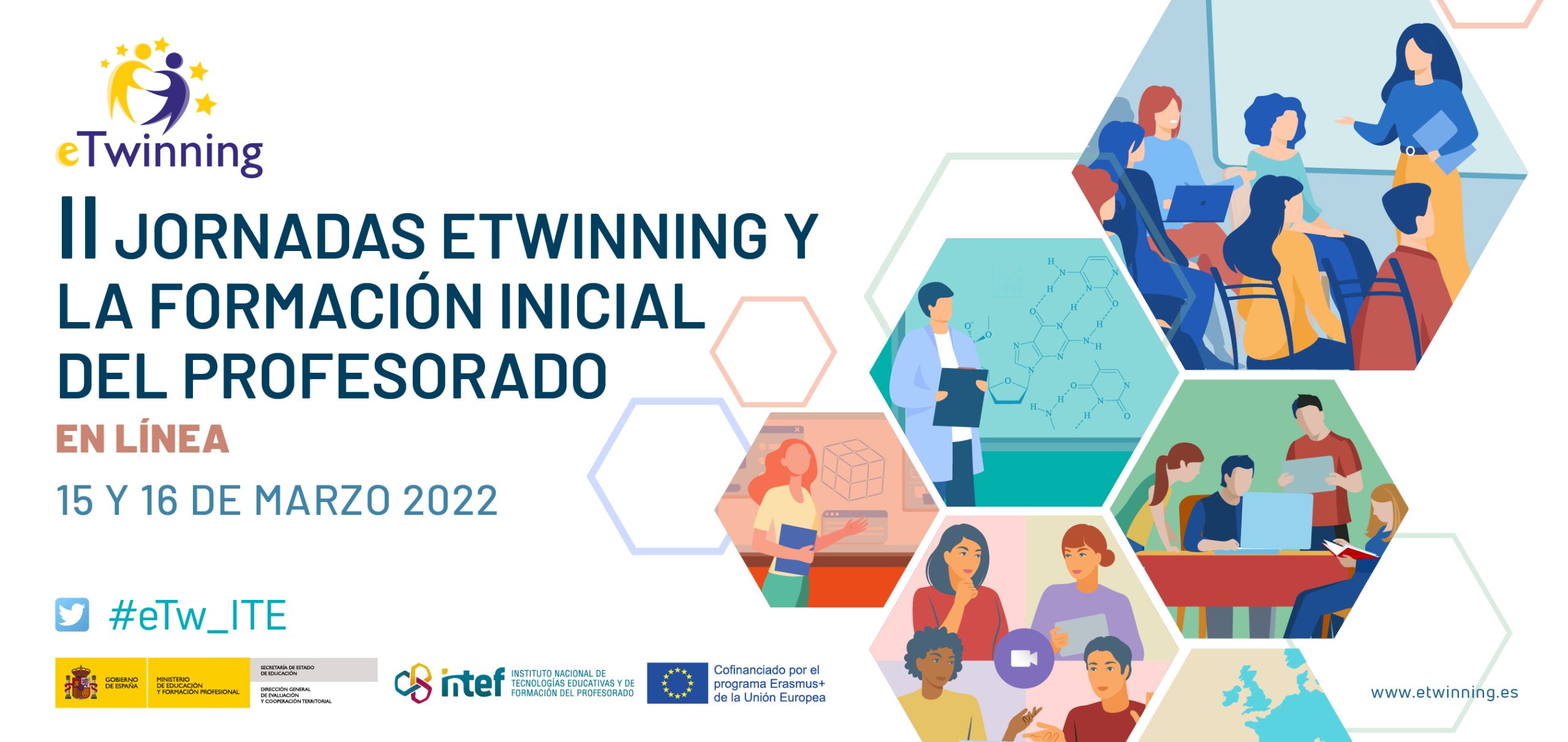Con el objetivo de fortalecer los lazos entre los docentes participantes, intercambiar experiencias y crear proyectos de colaboración eTwinning entre instituciones universitarias europeas, se van a celebrar las II Jornadas en línea eTwinning y la Formación Inicial del Profesorado, dirigidas específicamente a los docentes universitarios de las instituciones participantes en eTwinning y a su alumnado.