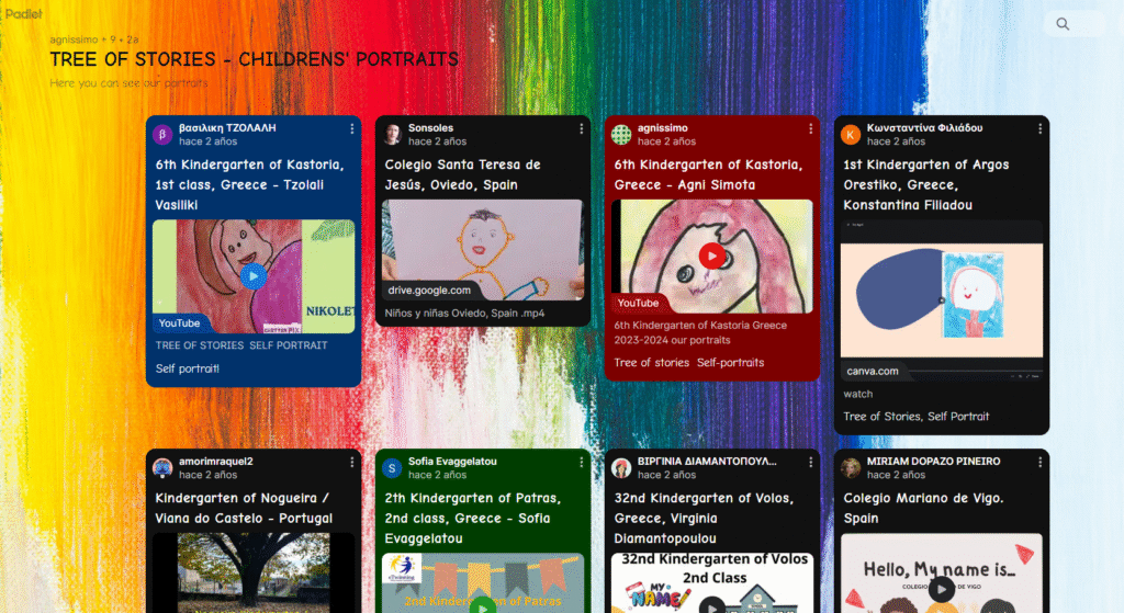 - Collaborative tree of stories: un árbol diseñado con Canva en el que cada escuela se representa mediante una hoja.